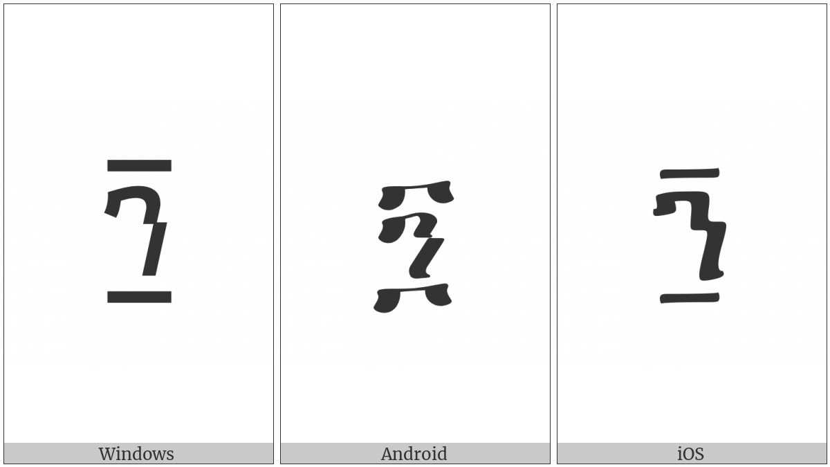 The image below shows how the “Ethiopic Number Ninety” symbol might look like on different operating systems. If the font in which this web site is displayed does not contain the symbol and there is no fallback font able to render it, you can use the image below to get an idea of what it should look like.