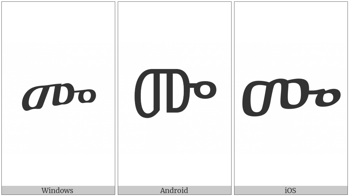 The image below shows how the “Ethiopic Syllable Sebatbeit Mwa” symbol might look like on different operating systems. If the font in which this web site is displayed does not contain the symbol and there is no fallback font able to render it, you can use the image below to get an idea of what it should look like.