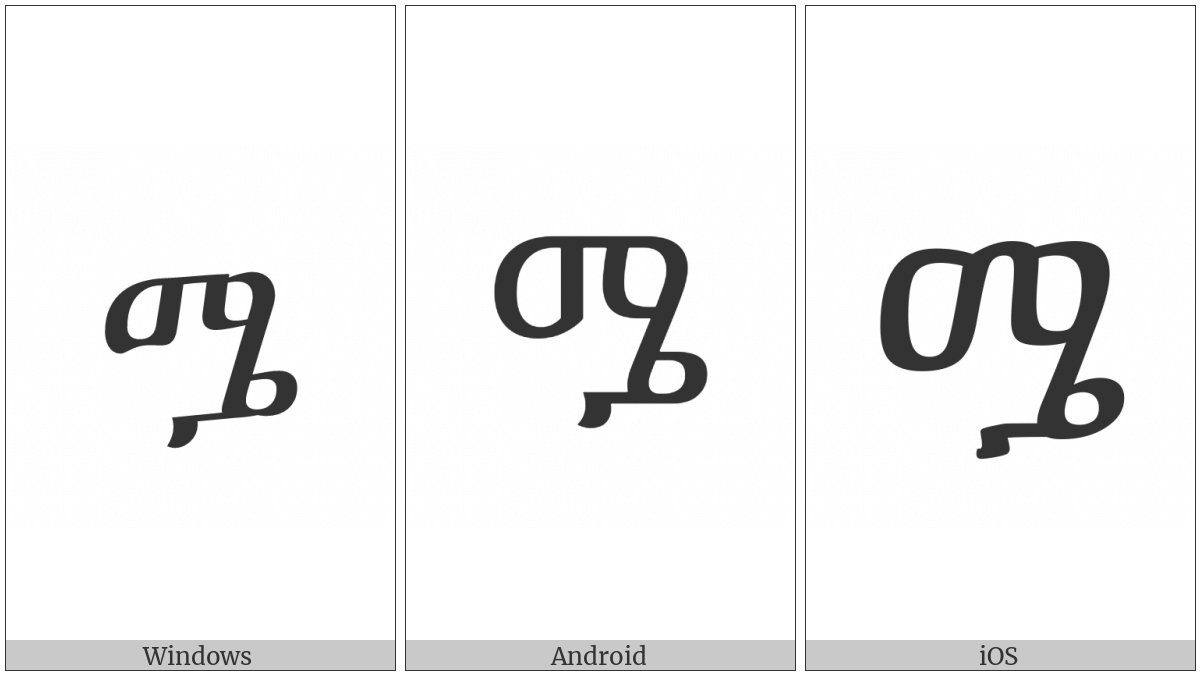 The image below shows how the “Ethiopic Syllable Mwee” symbol might look like on different operating systems. If the font in which this web site is displayed does not contain the symbol and there is no fallback font able to render it, you can use the image below to get an idea of what it should look like.