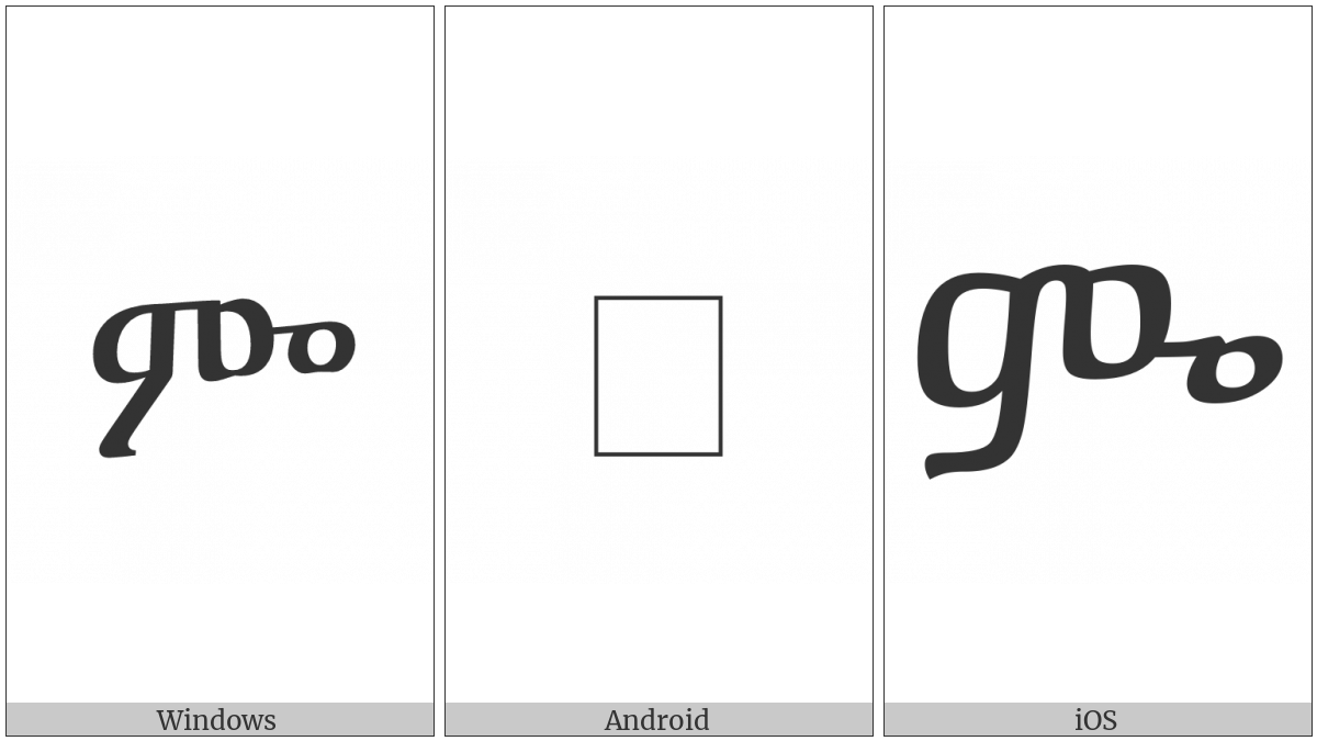The image below shows how the “Ethiopic Syllable Mwe” symbol might look like on different operating systems. If the font in which this web site is displayed does not contain the symbol and there is no fallback font able to render it, you can use the image below to get an idea of what it should look like.