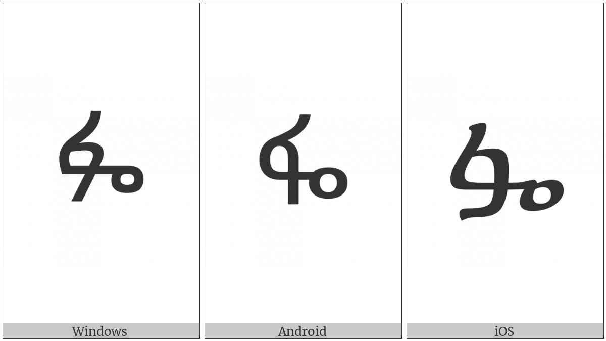 The image below shows how the “Ethiopic Syllable Fwee” symbol might look like on different operating systems. If the font in which this web site is displayed does not contain the symbol and there is no fallback font able to render it, you can use the image below to get an idea of what it should look like.