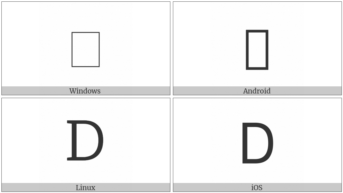 The image below shows how the “Cherokee Letter A” symbol might look like on different operating systems. If the font in which this web site is displayed does not contain the symbol and there is no fallback font able to render it, you can use the image below to get an idea of what it should look like.