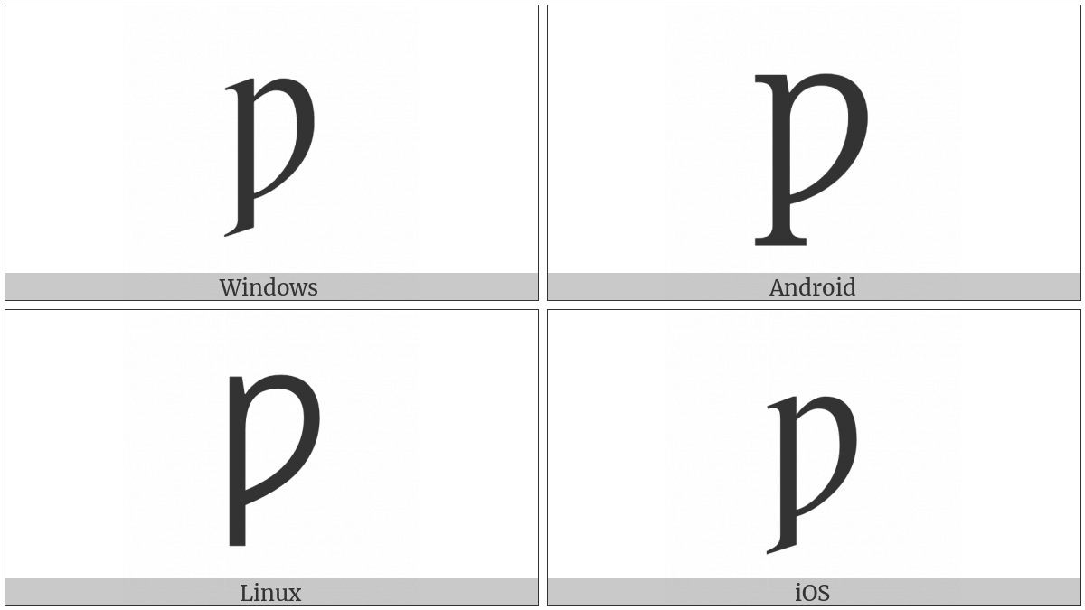 The image below shows how the “Latin Capital Letter Wynn” symbol might look like on different operating systems. If the font in which this web site is displayed does not contain the symbol and there is no fallback font able to render it, you can use the image below to get an idea of what it should look like.