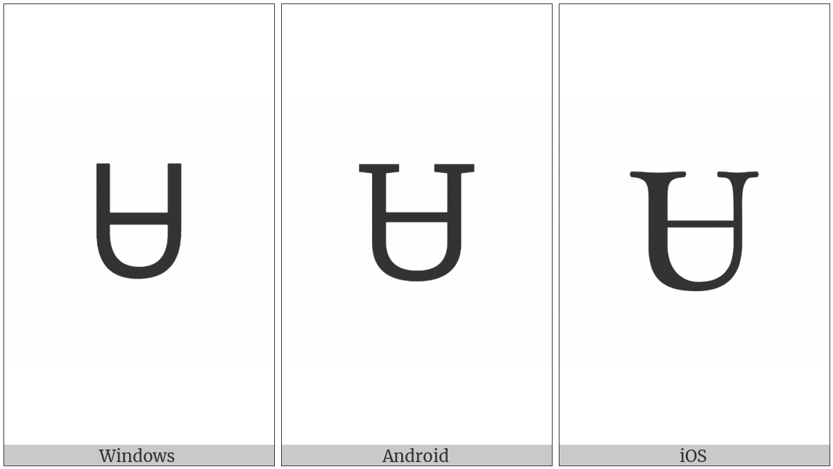 The image below shows how the “Cherokee Letter Sa” symbol might look like on different operating systems. If the font in which this web site is displayed does not contain the symbol and there is no fallback font able to render it, you can use the image below to get an idea of what it should look like.