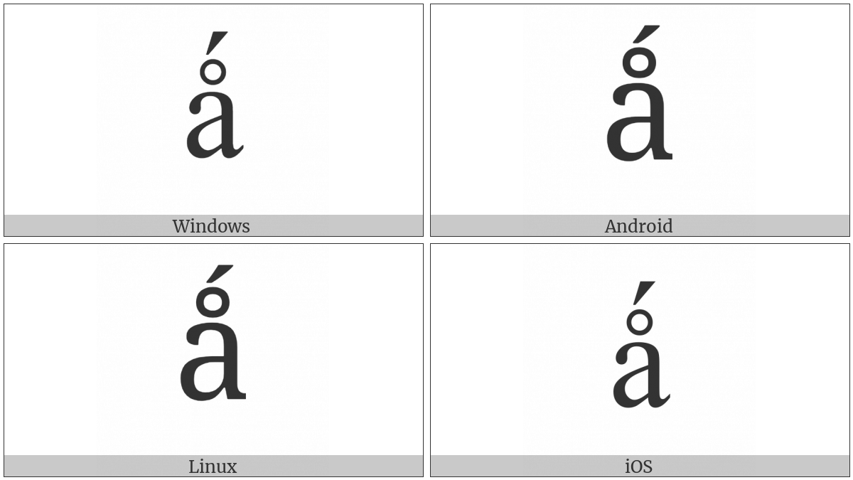 “Latin Small Letter A With Ring Above And Acute” on various operating systems