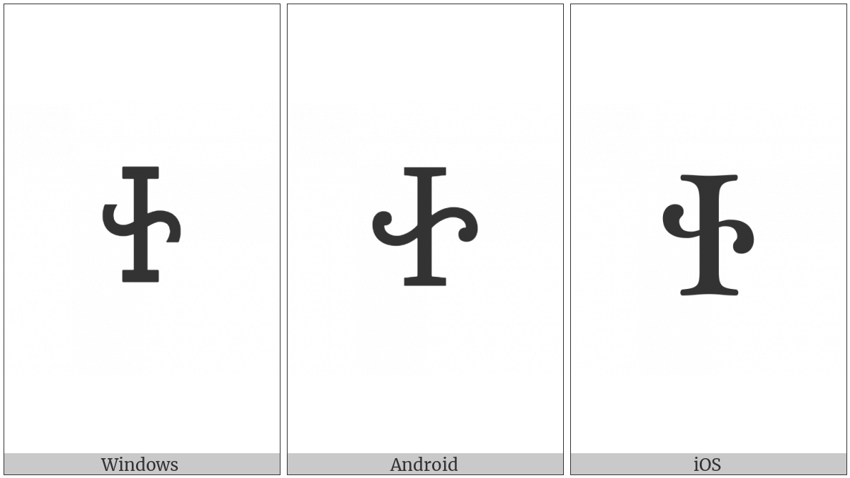 The image below shows how the “Cherokee Letter So” symbol might look like on different operating systems. If the font in which this web site is displayed does not contain the symbol and there is no fallback font able to render it, you can use the image below to get an idea of what it should look like.