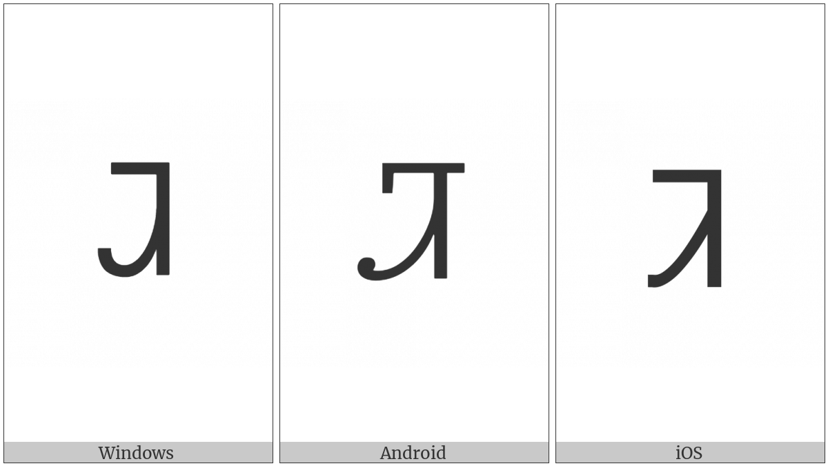 The image below shows how the “Cherokee Letter Ti” symbol might look like on different operating systems. If the font in which this web site is displayed does not contain the symbol and there is no fallback font able to render it, you can use the image below to get an idea of what it should look like.