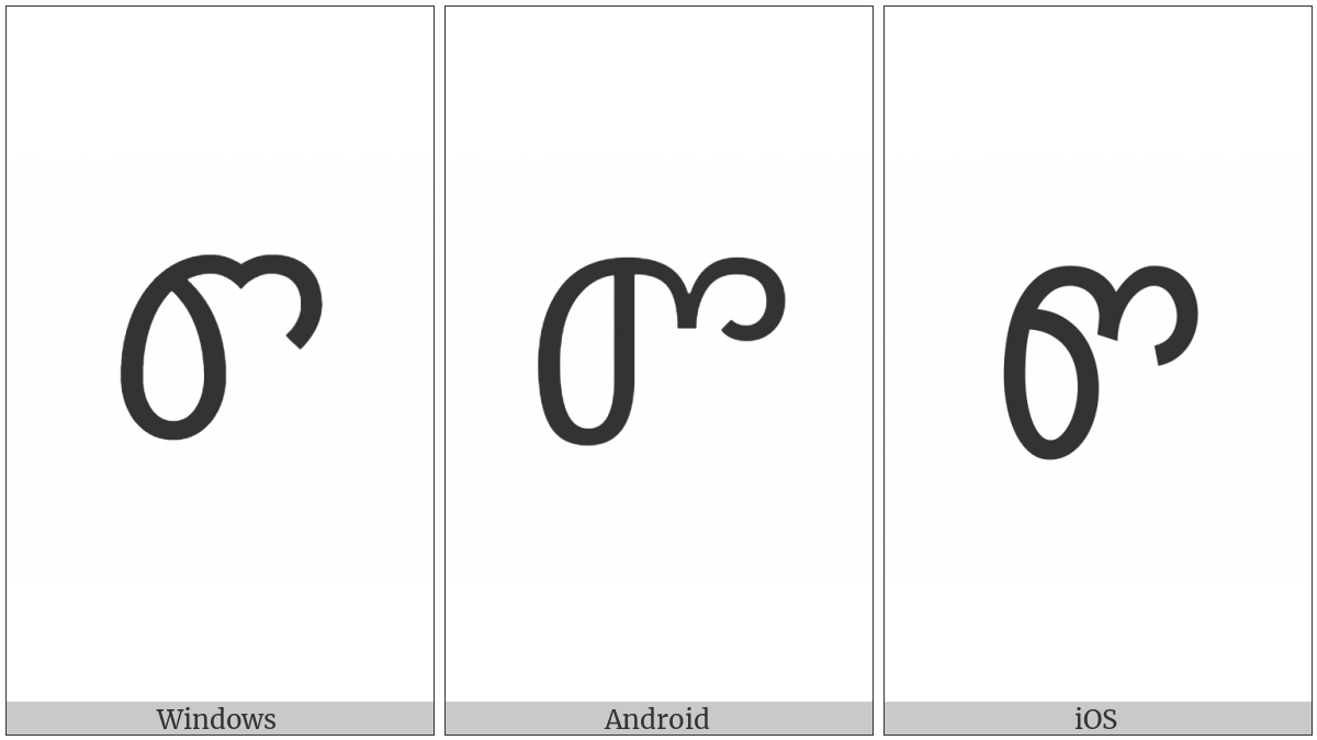 The image below shows how the “Cherokee Letter Dv” symbol might look like on different operating systems. If the font in which this web site is displayed does not contain the symbol and there is no fallback font able to render it, you can use the image below to get an idea of what it should look like.