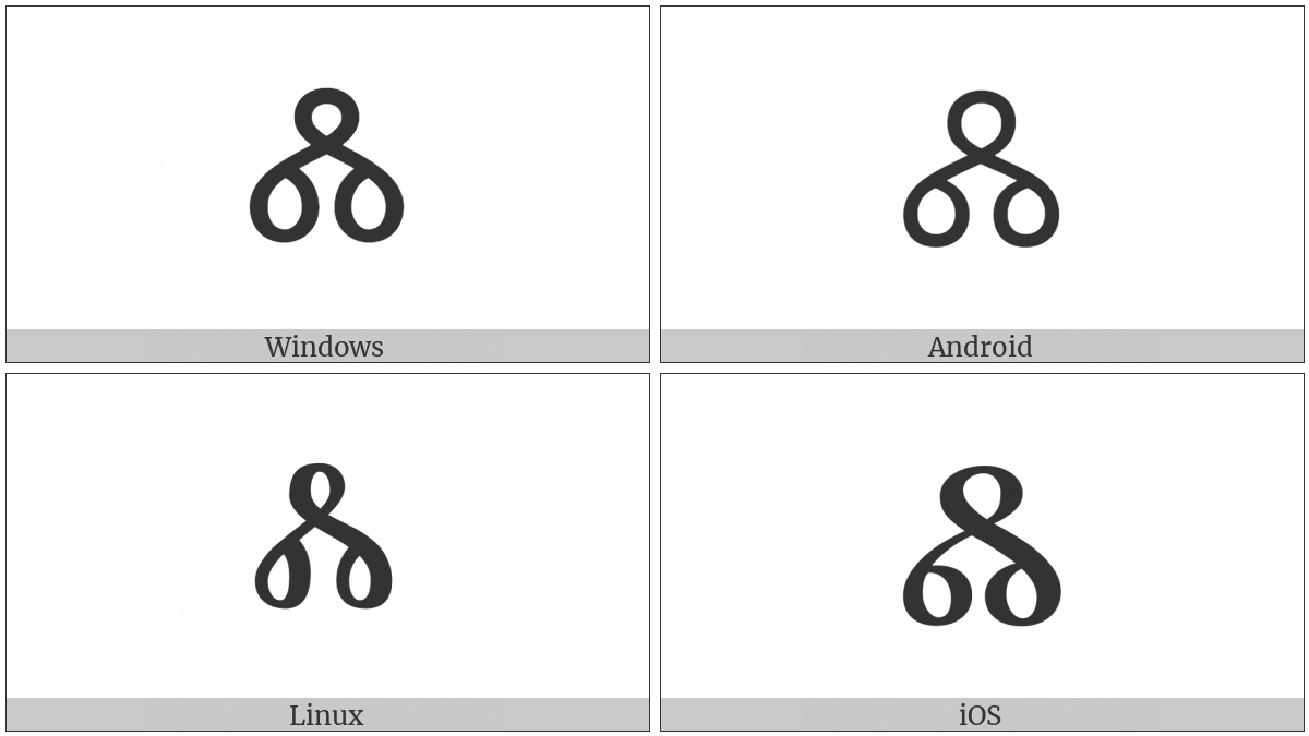 The image below shows how the “Cherokee Letter Dla” symbol might look like on different operating systems. If the font in which this web site is displayed does not contain the symbol and there is no fallback font able to render it, you can use the image below to get an idea of what it should look like.