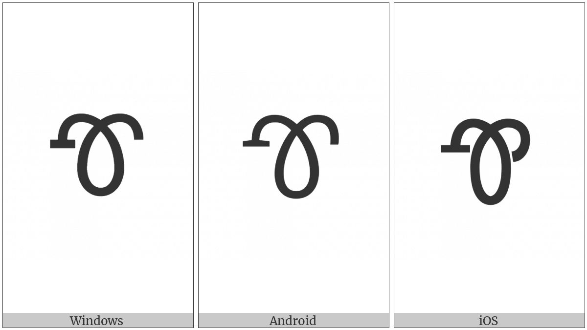 The image below shows how the “Cherokee Letter Tlu” symbol might look like on different operating systems. If the font in which this web site is displayed does not contain the symbol and there is no fallback font able to render it, you can use the image below to get an idea of what it should look like.