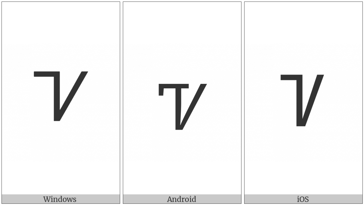 The image below shows how the “Cherokee Letter Tse” symbol might look like on different operating systems. If the font in which this web site is displayed does not contain the symbol and there is no fallback font able to render it, you can use the image below to get an idea of what it should look like.