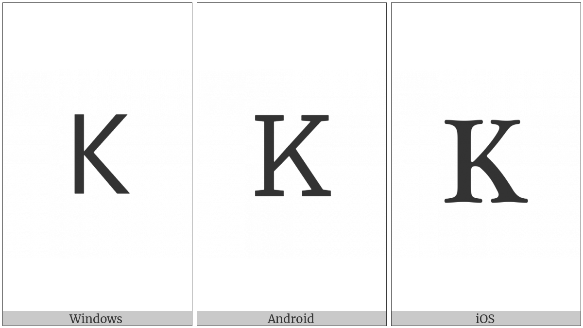 The image below shows how the “Cherokee Letter Tso” symbol might look like on different operating systems. If the font in which this web site is displayed does not contain the symbol and there is no fallback font able to render it, you can use the image below to get an idea of what it should look like.