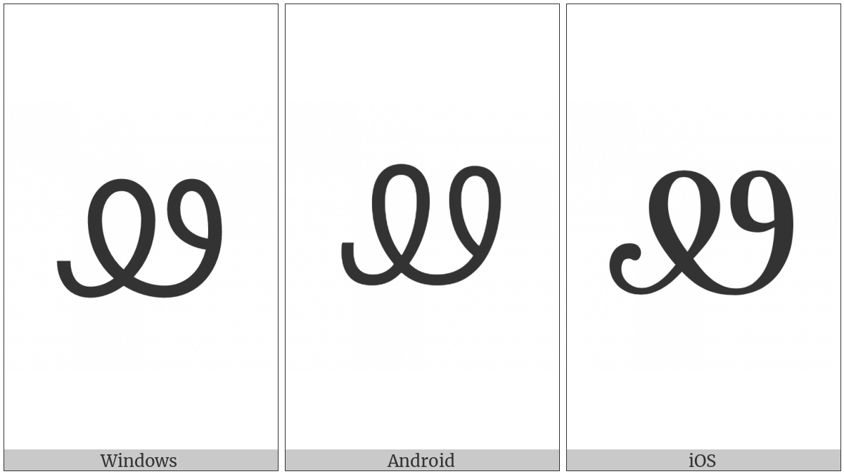The image below shows how the “Cherokee Letter We” symbol might look like on different operating systems. If the font in which this web site is displayed does not contain the symbol and there is no fallback font able to render it, you can use the image below to get an idea of what it should look like.