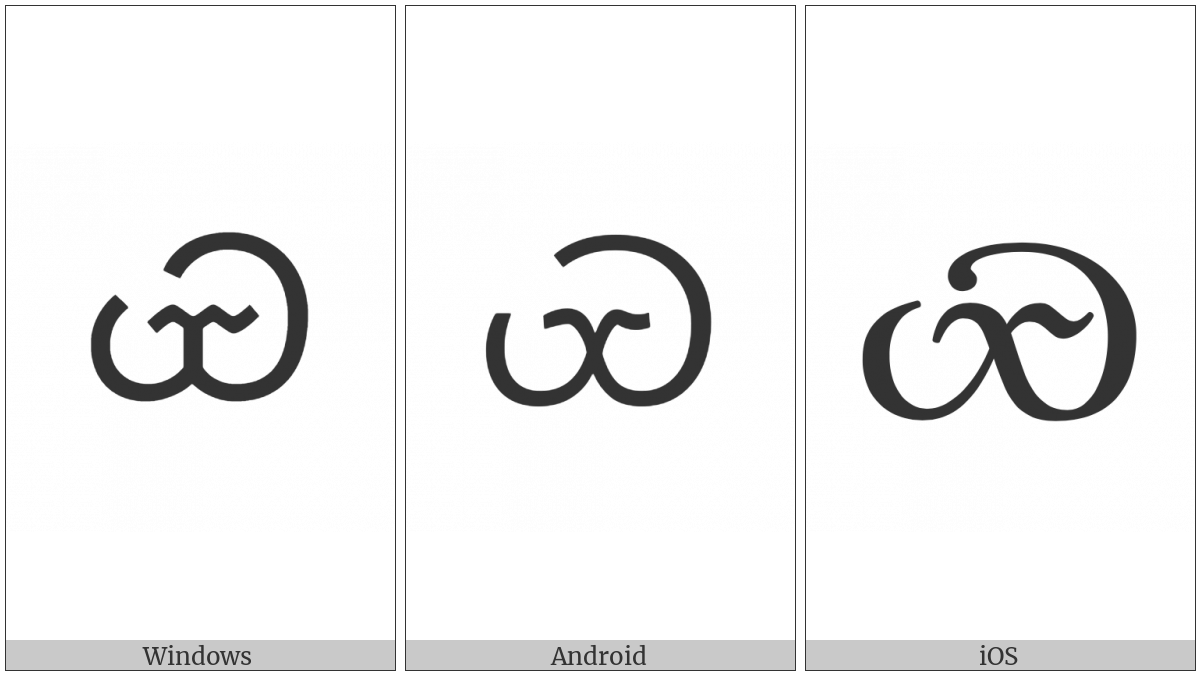 The image below shows how the “Cherokee Letter Ya” symbol might look like on different operating systems. If the font in which this web site is displayed does not contain the symbol and there is no fallback font able to render it, you can use the image below to get an idea of what it should look like.