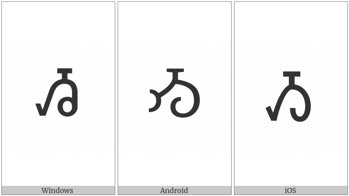 The image below shows how the “Cherokee Letter Yi” symbol might look like on different operating systems. If the font in which this web site is displayed does not contain the symbol and there is no fallback font able to render it, you can use the image below to get an idea of what it should look like.