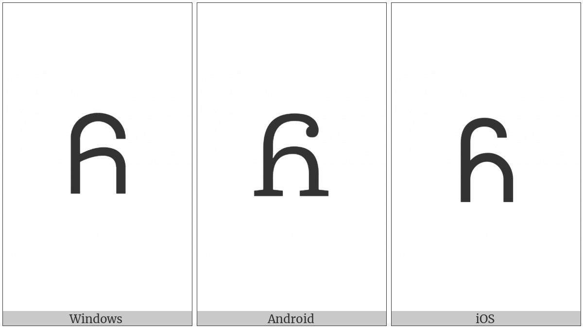 The image below shows how the “Cherokee Letter Yo” symbol might look like on different operating systems. If the font in which this web site is displayed does not contain the symbol and there is no fallback font able to render it, you can use the image below to get an idea of what it should look like.