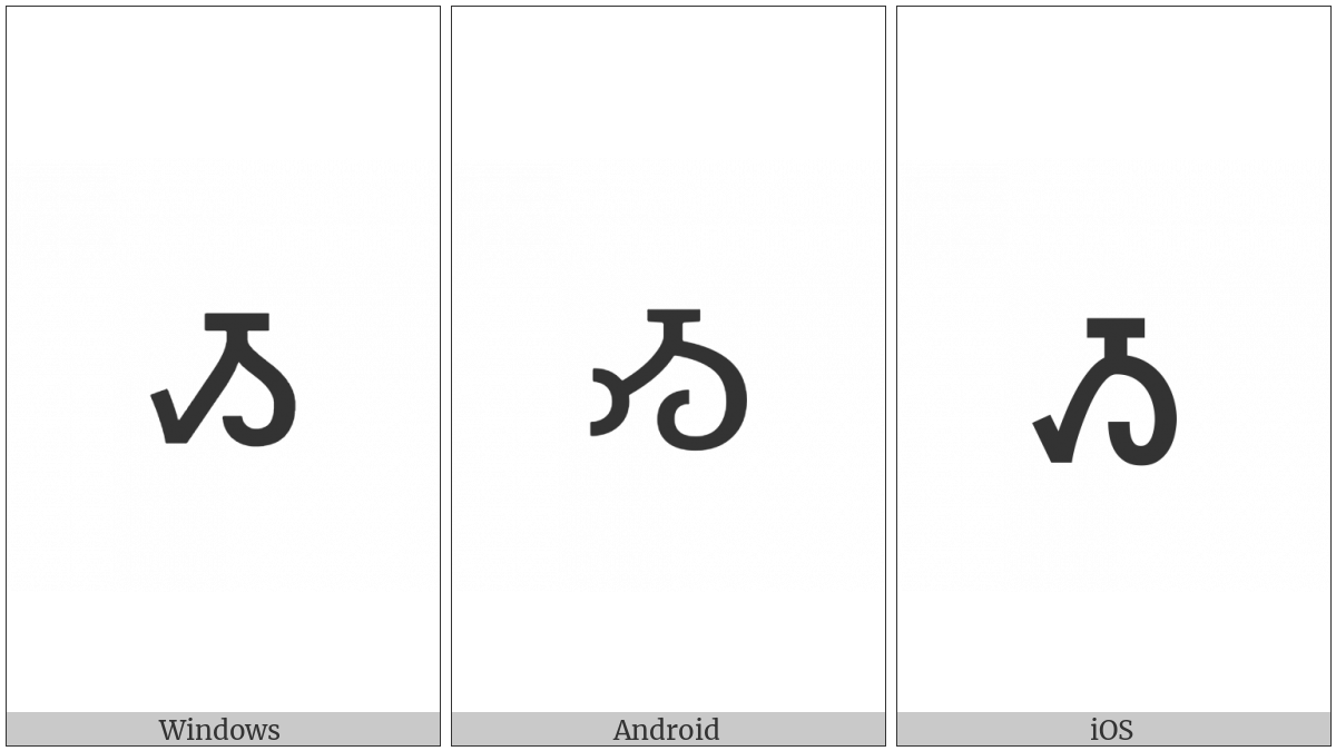 The image below shows how the “Cherokee Small Letter Yi” symbol might look like on different operating systems. If the font in which this web site is displayed does not contain the symbol and there is no fallback font able to render it, you can use the image below to get an idea of what it should look like.
