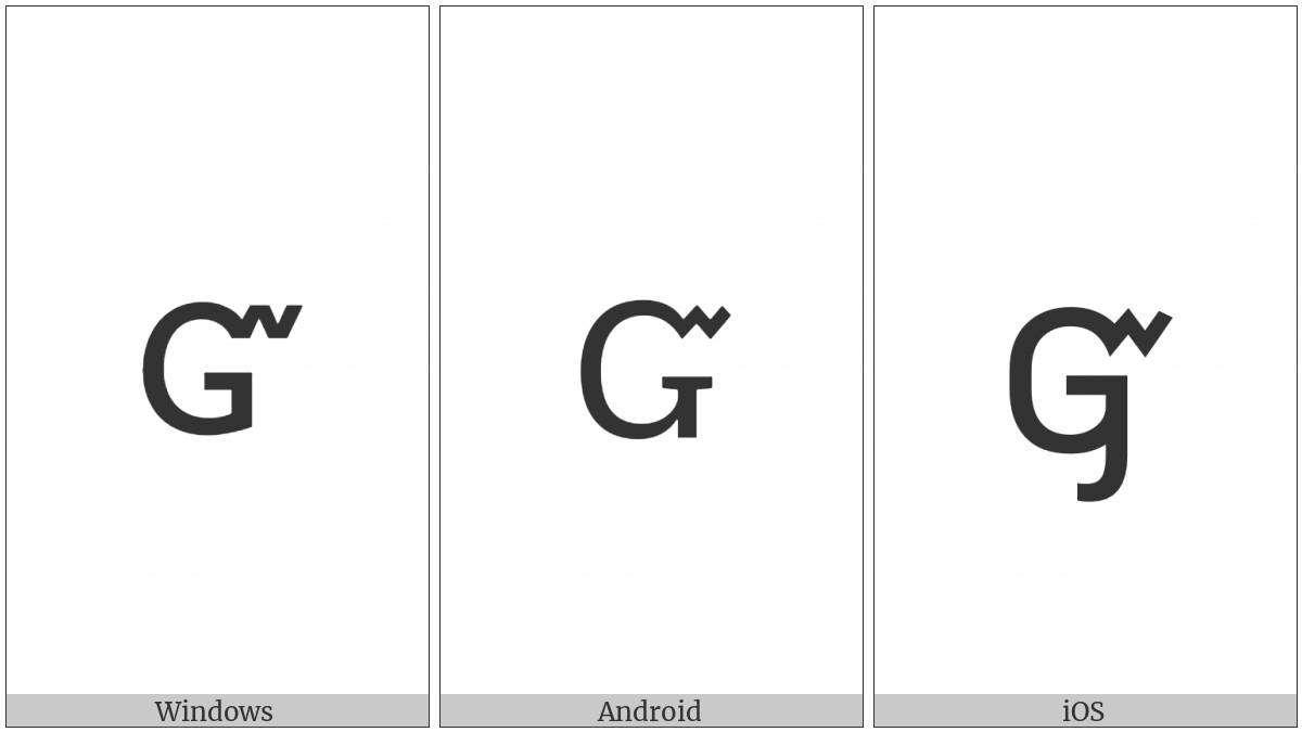 The image below shows how the “Cherokee Small Letter Yu” symbol might look like on different operating systems. If the font in which this web site is displayed does not contain the symbol and there is no fallback font able to render it, you can use the image below to get an idea of what it should look like.