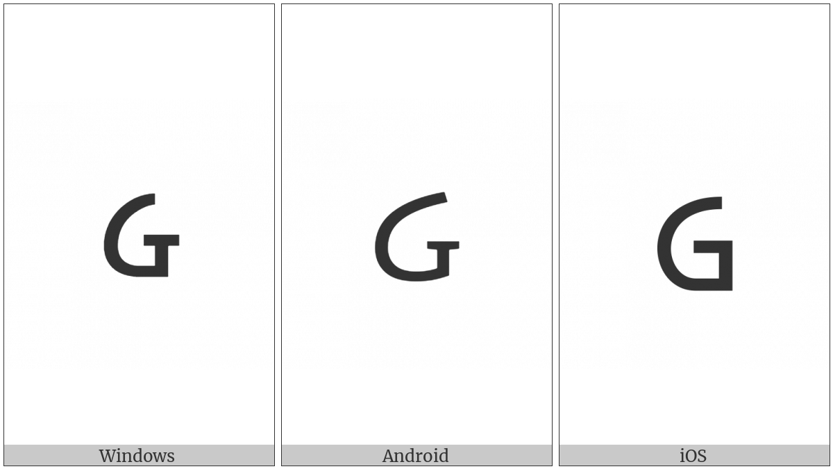 The image below shows how the “Cherokee Small Letter Mv” symbol might look like on different operating systems. If the font in which this web site is displayed does not contain the symbol and there is no fallback font able to render it, you can use the image below to get an idea of what it should look like.