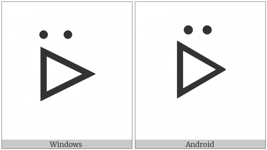 The image below shows how the “Canadian Syllabics Y-Cree Oo” symbol might look like on different operating systems. If the font in which this web site is displayed does not contain the symbol and there is no fallback font able to render it, you can use the image below to get an idea of what it should look like.