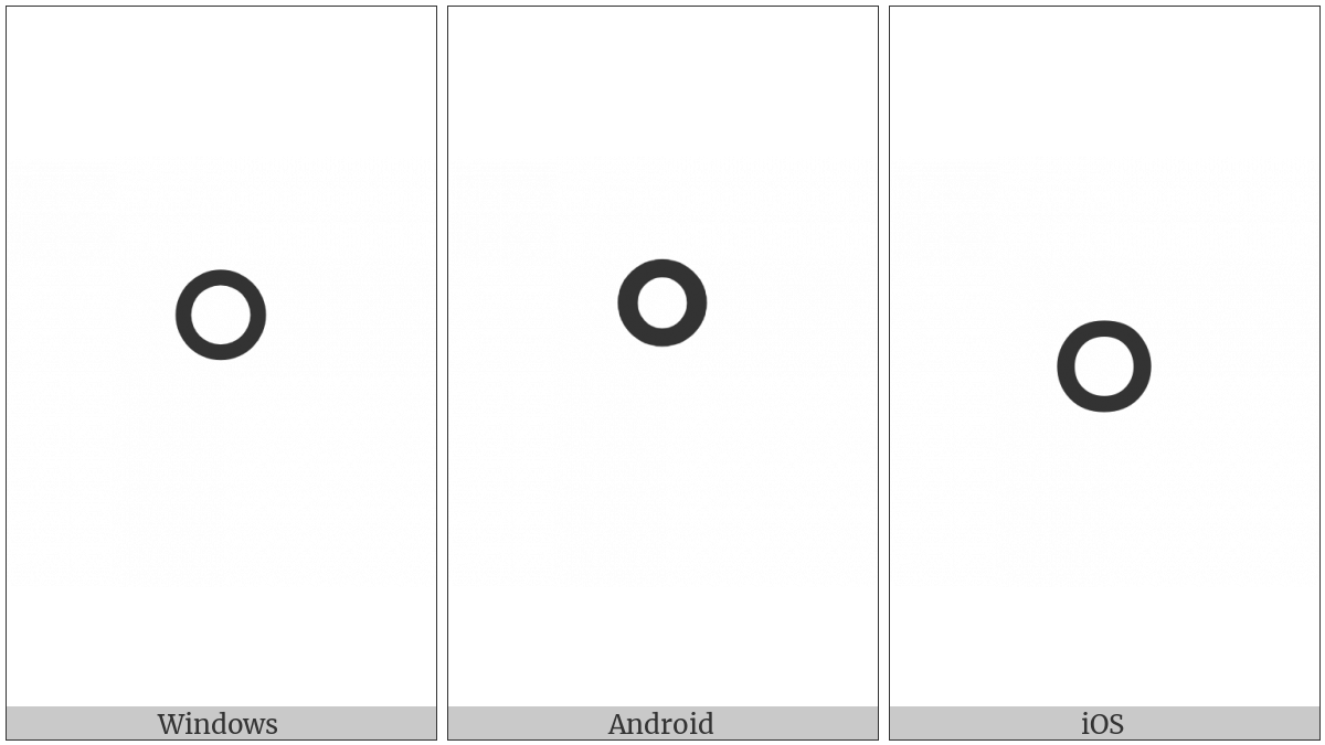 The image below shows how the “Canadian Syllabics Final Ring” symbol might look like on different operating systems. If the font in which this web site is displayed does not contain the symbol and there is no fallback font able to render it, you can use the image below to get an idea of what it should look like.