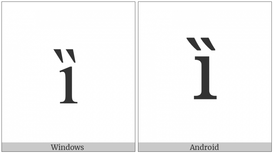 The image below shows how the “Latin Small Letter I With Double Grave” symbol might look like on different operating systems. If the font in which this web site is displayed does not contain the symbol and there is no fallback font able to render it, you can use the image below to get an idea of what it should look like.
