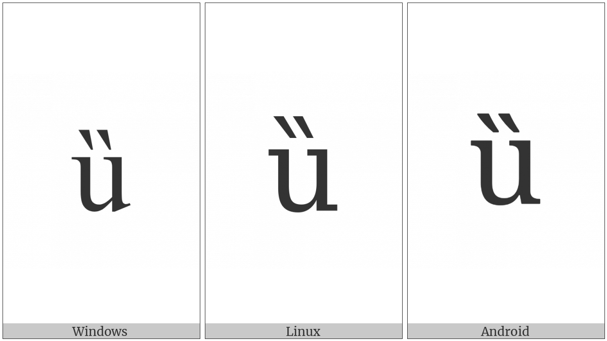 The image below shows how the “Latin Small Letter U With Double Grave” symbol might look like on different operating systems. If the font in which this web site is displayed does not contain the symbol and there is no fallback font able to render it, you can use the image below to get an idea of what it should look like.