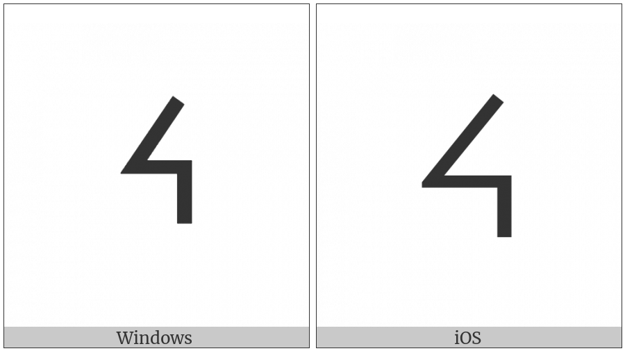 The image below shows how the “Canadian Syllabics Ye” symbol might look like on different operating systems. If the font in which this web site is displayed does not contain the symbol and there is no fallback font able to render it, you can use the image below to get an idea of what it should look like.
