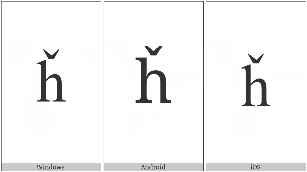 The image below shows how the “Latin Small Letter H With Caron” symbol might look like on different operating systems. If the font in which this web site is displayed does not contain the symbol and there is no fallback font able to render it, you can use the image below to get an idea of what it should look like.