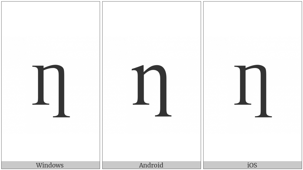 The image below shows how the “Latin Capital Letter N With Long Right Leg” symbol might look like on different operating systems. If the font in which this web site is displayed does not contain the symbol and there is no fallback font able to render it, you can use the image below to get an idea of what it should look like.