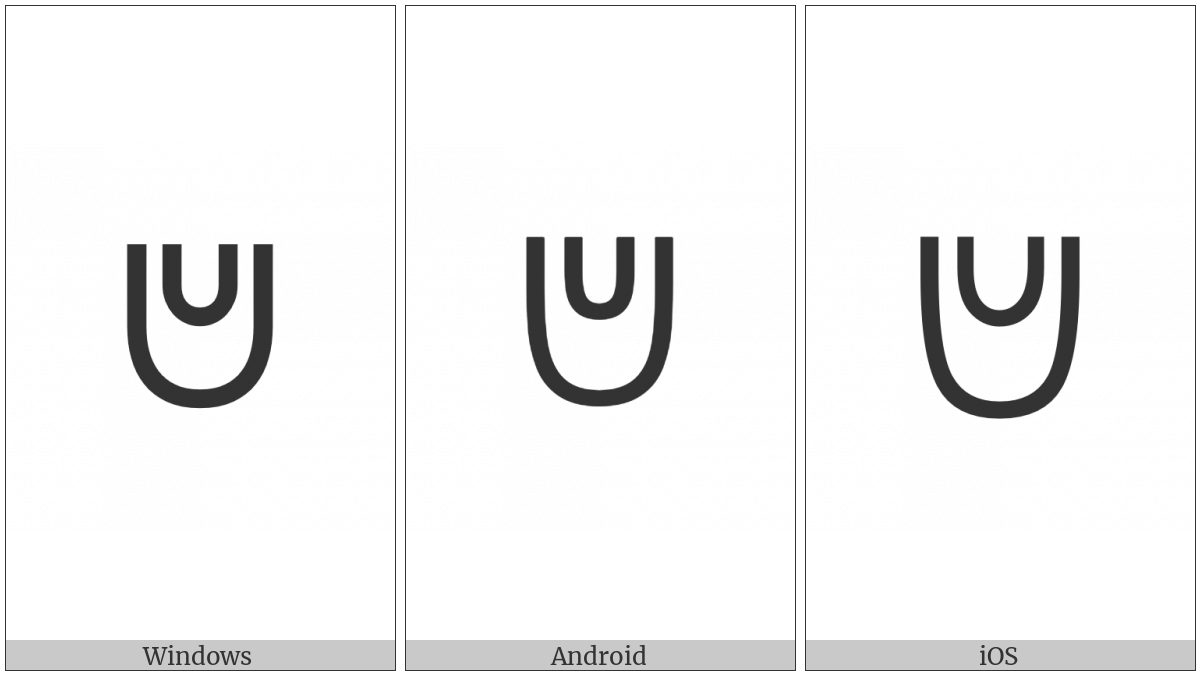 The image below shows how the “Canadian Syllabics Tye” symbol might look like on different operating systems. If the font in which this web site is displayed does not contain the symbol and there is no fallback font able to render it, you can use the image below to get an idea of what it should look like.