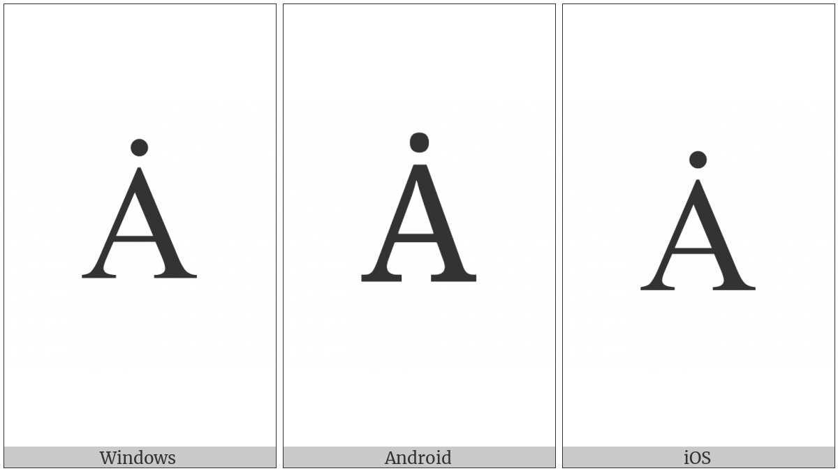 “Latin Capital Letter A With Dot Above” on various operating systems