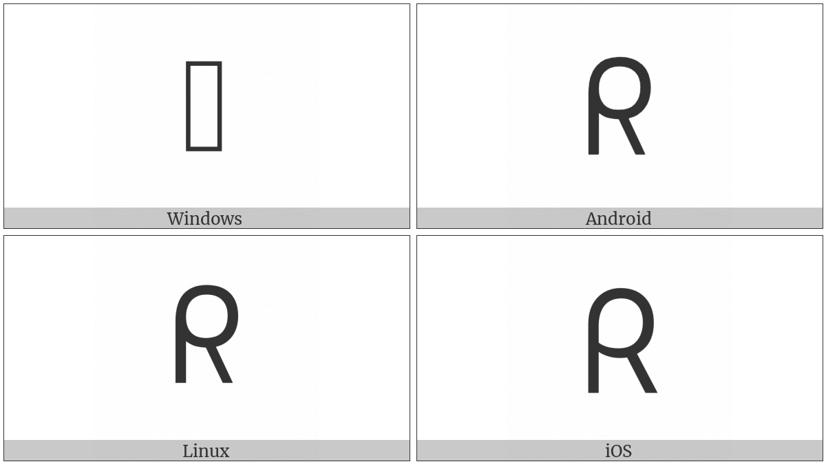 The image below shows how the “Canadian Syllabics Tlhi” symbol might look like on different operating systems. If the font in which this web site is displayed does not contain the symbol and there is no fallback font able to render it, you can use the image below to get an idea of what it should look like.