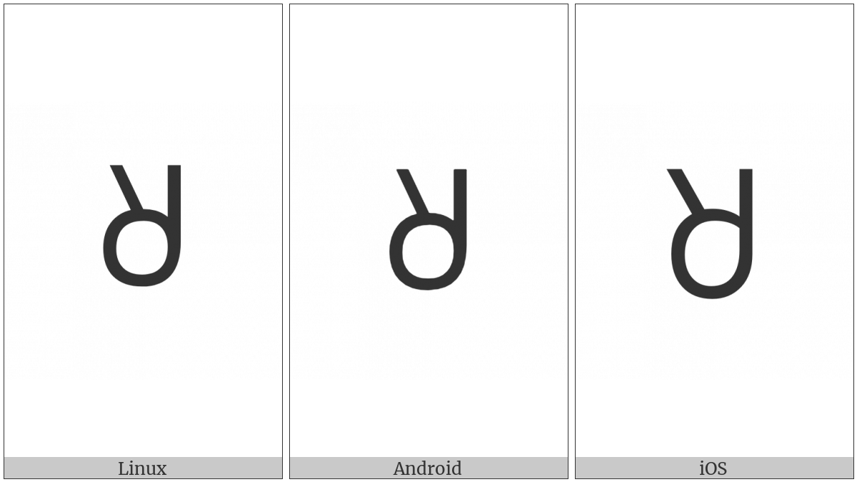 The image below shows how the “Canadian Syllabics Tlho” symbol might look like on different operating systems. If the font in which this web site is displayed does not contain the symbol and there is no fallback font able to render it, you can use the image below to get an idea of what it should look like.