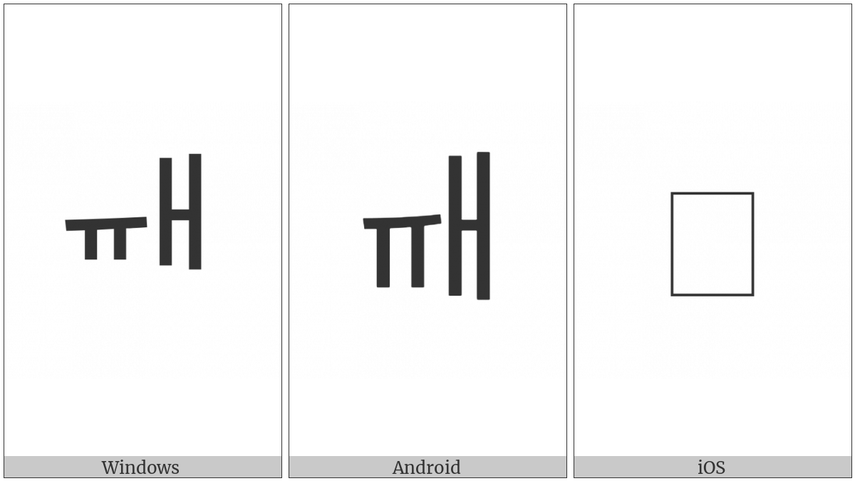 The image below shows how the “Hangul Jungseong Yu-Ae” symbol might look like on different operating systems. If the font in which this web site is displayed does not contain the symbol and there is no fallback font able to render it, you can use the image below to get an idea of what it should look like.