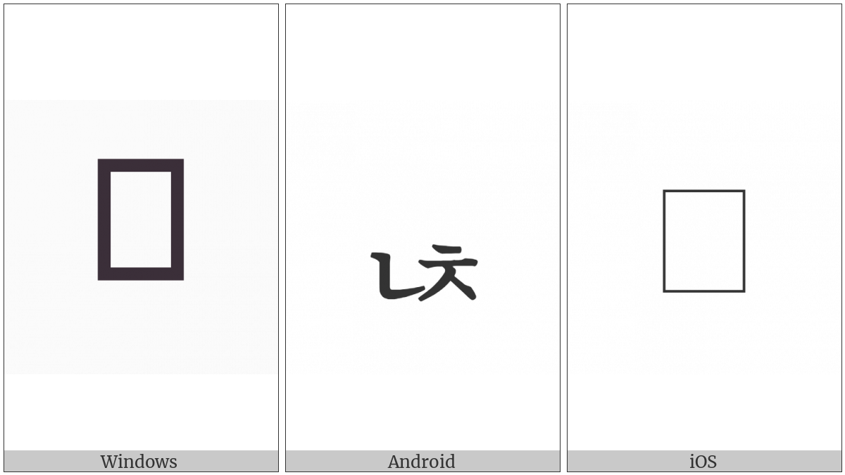 The image below shows how the “Hangul Jongseong Nieun-Chieuch” symbol might look like on different operating systems. If the font in which this web site is displayed does not contain the symbol and there is no fallback font able to render it, you can use the image below to get an idea of what it should look like.