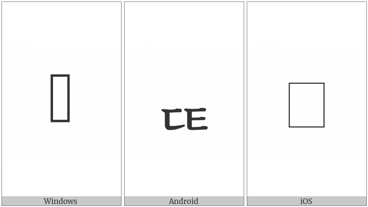 The image below shows how the “Hangul Jongseong Tikeut-Thieuth” symbol might look like on different operating systems. If the font in which this web site is displayed does not contain the symbol and there is no fallback font able to render it, you can use the image below to get an idea of what it should look like.