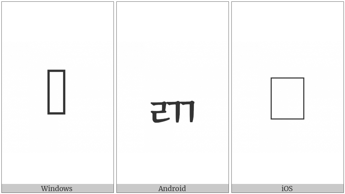 The image below shows how the “Hangul Jongseong Rieul-Ssangkiyeok” symbol might look like on different operating systems. If the font in which this web site is displayed does not contain the symbol and there is no fallback font able to render it, you can use the image below to get an idea of what it should look like.
