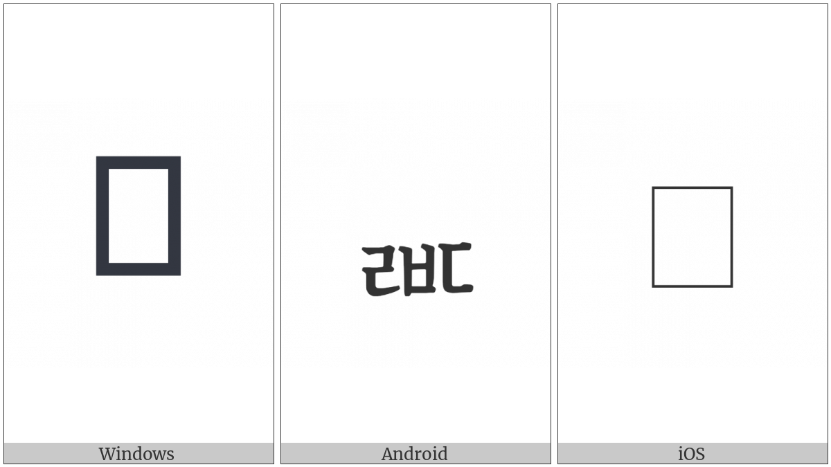 The image below shows how the “Hangul Jongseong Rieul-Pieup-Tikeut” symbol might look like on different operating systems. If the font in which this web site is displayed does not contain the symbol and there is no fallback font able to render it, you can use the image below to get an idea of what it should look like.