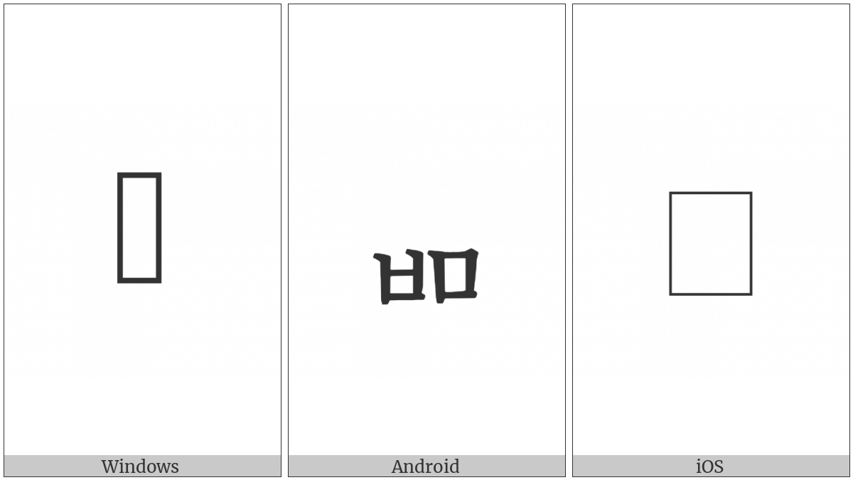 The image below shows how the “Hangul Jongseong Pieup-Mieum” symbol might look like on different operating systems. If the font in which this web site is displayed does not contain the symbol and there is no fallback font able to render it, you can use the image below to get an idea of what it should look like.