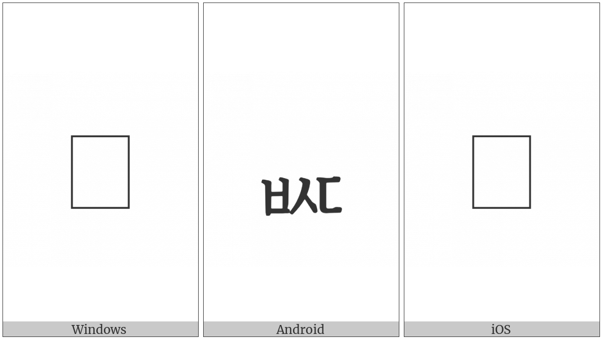 The image below shows how the “Hangul Jongseong Pieup-Sios-Tikeut” symbol might look like on different operating systems. If the font in which this web site is displayed does not contain the symbol and there is no fallback font able to render it, you can use the image below to get an idea of what it should look like.