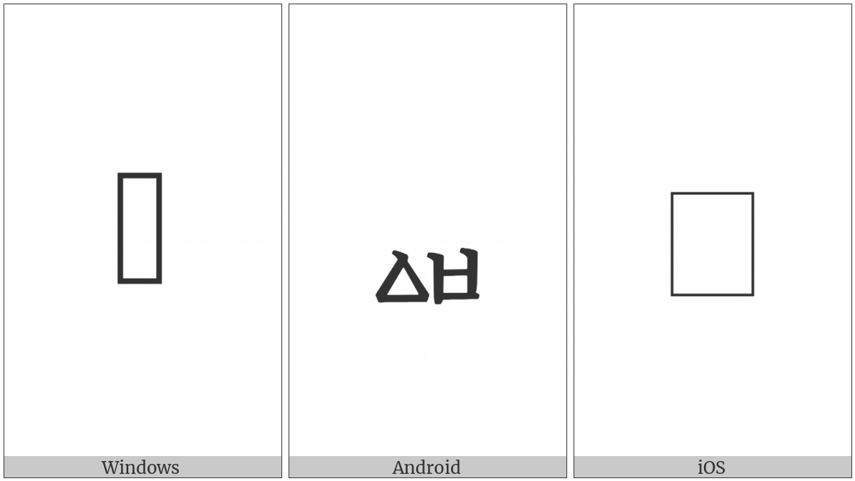The image below shows how the “Hangul Jongseong Pansios-Pieup” symbol might look like on different operating systems. If the font in which this web site is displayed does not contain the symbol and there is no fallback font able to render it, you can use the image below to get an idea of what it should look like.