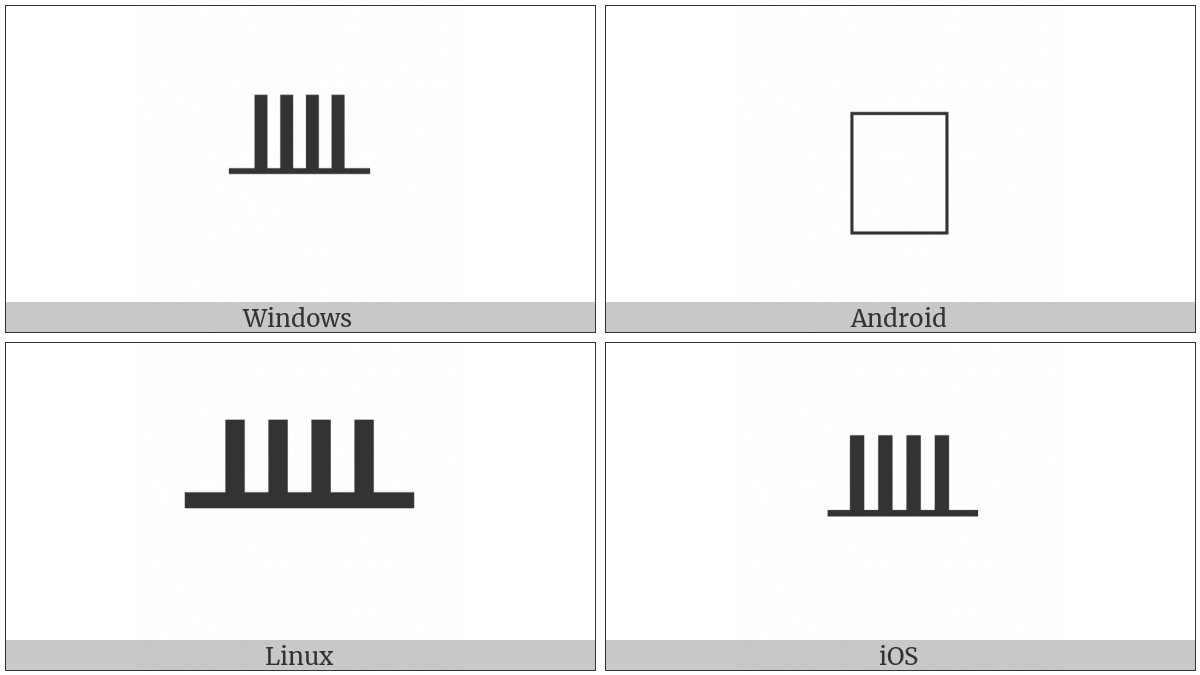 The image below shows how the “Ogham Letter Coll” symbol might look like on different operating systems. If the font in which this web site is displayed does not contain the symbol and there is no fallback font able to render it, you can use the image below to get an idea of what it should look like.