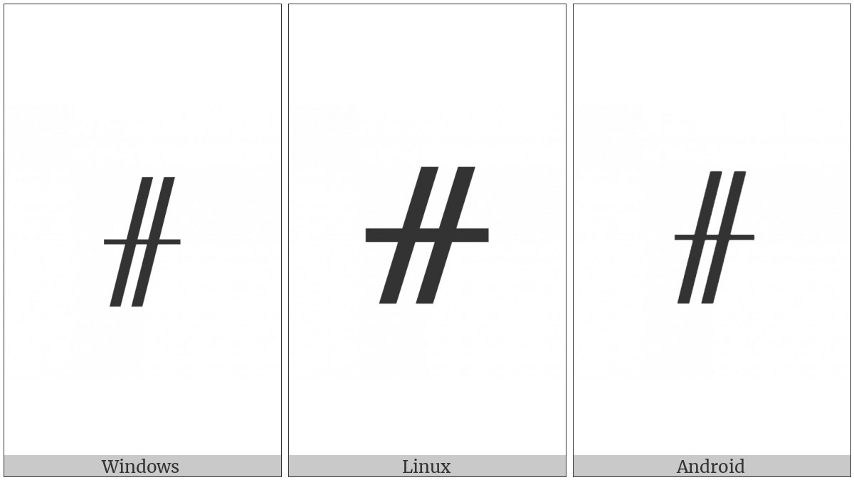 The image below shows how the “Ogham Letter Gort” symbol might look like on different operating systems. If the font in which this web site is displayed does not contain the symbol and there is no fallback font able to render it, you can use the image below to get an idea of what it should look like.
