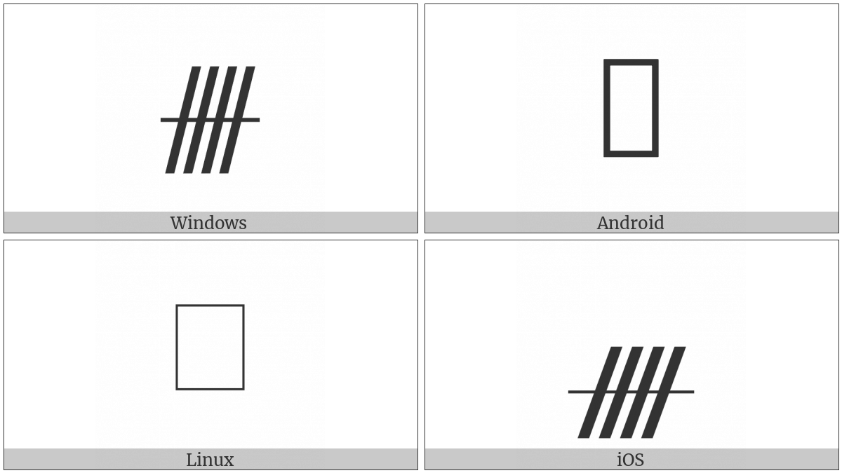 The image below shows how the “Ogham Letter Straif” symbol might look like on different operating systems. If the font in which this web site is displayed does not contain the symbol and there is no fallback font able to render it, you can use the image below to get an idea of what it should look like.