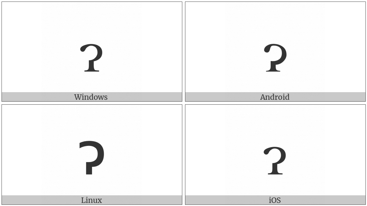 The image below shows how the “Latin Small Letter Glottal Stop” symbol might look like on different operating systems. If the font in which this web site is displayed does not contain the symbol and there is no fallback font able to render it, you can use the image below to get an idea of what it should look like.