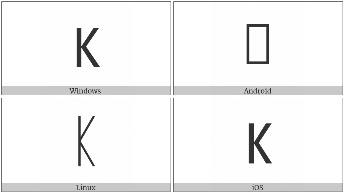 The image below shows how the “Runic Letter Open-P” symbol might look like on different operating systems. If the font in which this web site is displayed does not contain the symbol and there is no fallback font able to render it, you can use the image below to get an idea of what it should look like.