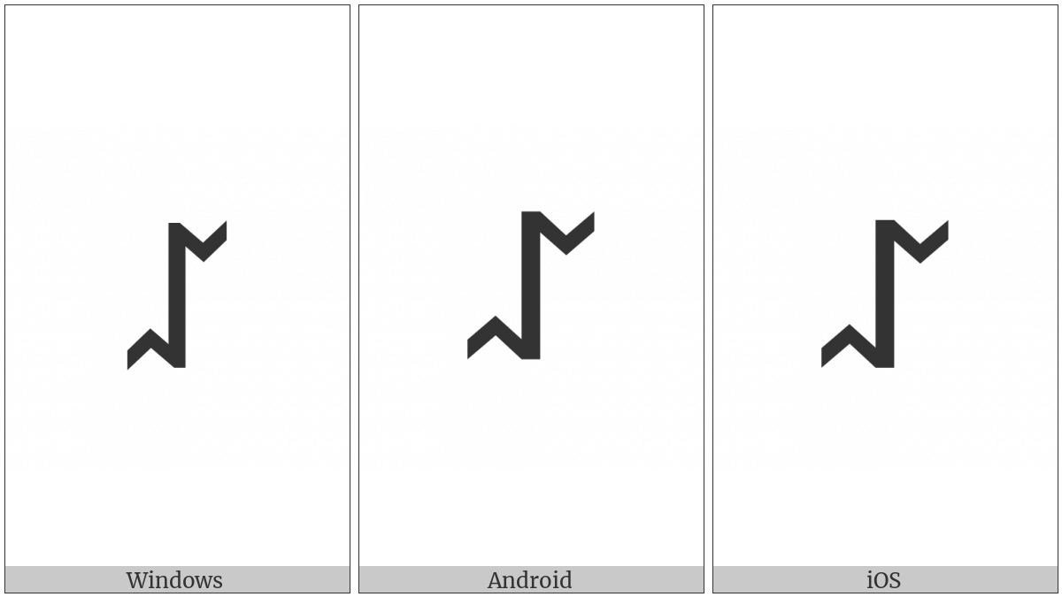 The image below shows how the “Runic Letter Cweorth” symbol might look like on different operating systems. If the font in which this web site is displayed does not contain the symbol and there is no fallback font able to render it, you can use the image below to get an idea of what it should look like.