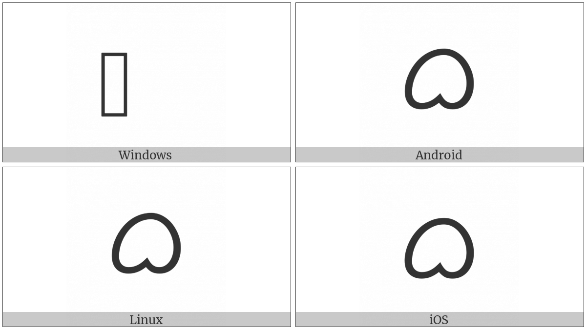 The image below shows how the “Tagalog Letter Ba” symbol might look like on different operating systems. If the font in which this web site is displayed does not contain the symbol and there is no fallback font able to render it, you can use the image below to get an idea of what it should look like.