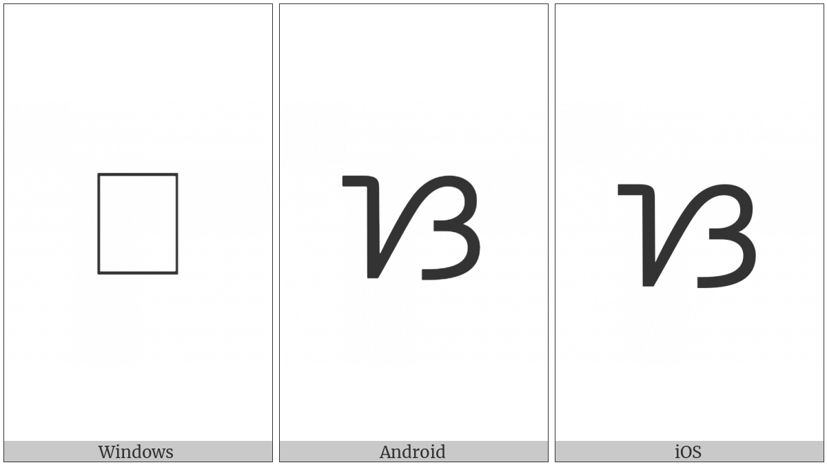 The image below shows how the “Tagalog Letter Sa” symbol might look like on different operating systems. If the font in which this web site is displayed does not contain the symbol and there is no fallback font able to render it, you can use the image below to get an idea of what it should look like.